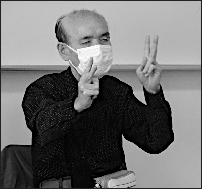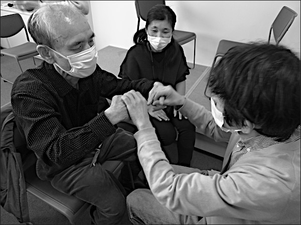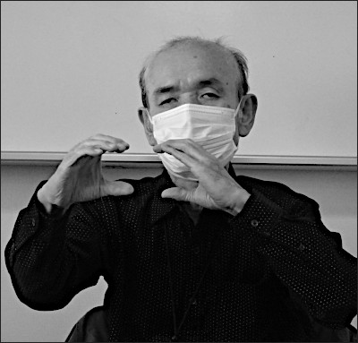 2021年12月18日(土)、石川盲ろう者友の会の宮永 聖明(しょうみょう)会長(73歳)においでいただき、触手話の講演と体験会をお願いしました。富山の友の会には現在、触手話をふだんから使う会員はいませんが、手話を使う弱視会員と支援者は、将来にわたってスムースにコミュニケーションできるよう、触手話を学んでいきたいと考えています。