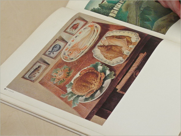このグループは、食卓に並べられた魚の絵(岡 鹿之助)を選びました。「どういう場面なんだろうねえ、よくわからない」「生のようだし、これから調理するために並べたようでもないし」「点々を打つようにして描いてない? 不思議な雰囲気だねえ」・・・