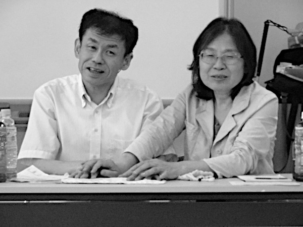 話を戻すと、荒さんは新神戸駅で私を出迎えてくれて、そのあと六甲山牧場に行った。盲ろうでも楽しめる方法をみんなで役割分担して決めていた。山羊に触るとか、チーズシェークがすごくおいしかった。全盲ろうでも、工夫をすればいっぱい楽しめることがある、と荒さんも知ることができた。その後、荒さんは、東京盲ろう者友の会の理事を5年間、がんばってくれました(写真:藤鹿さん(左)と通訳・介助者の板垣さん(右))。