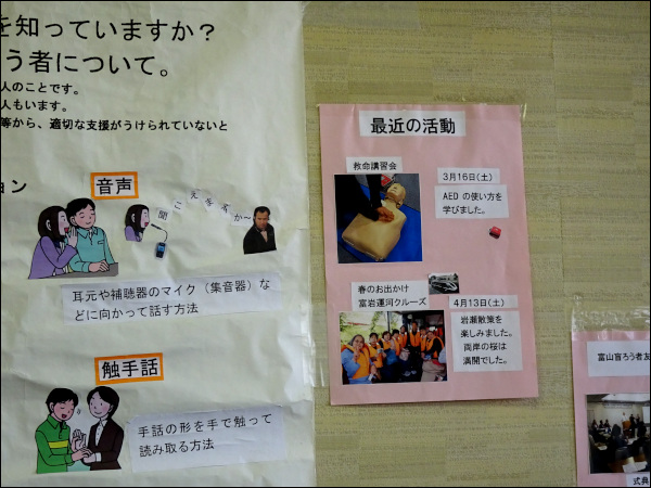 富山盲ろう者友の会は、いつものように活動紹介・相談コーナーを設けるとともに、はじめて作品コンテストに出品しました。