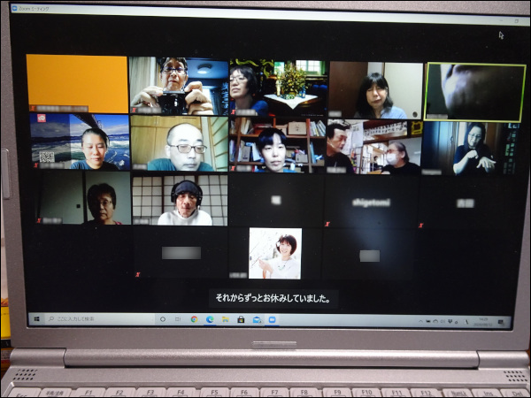 9月12日(土)、友の会としてははじめて、Zoomを使ったオンライン定例会を開催しました。新型コロナウイルスの感染は富山ではひとまず落ち着いてきていますが、今後、再び感染が拡大したときに備えて、実験的に行いました。