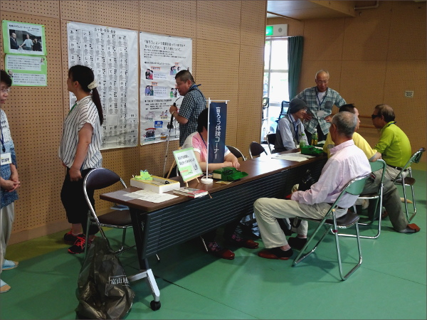 会場の体育館には、障害者団体や業者などが20近くのコーナーを作り、視覚障害者の暮らしに役立つ機器の展示や、説明、相談を行いました。